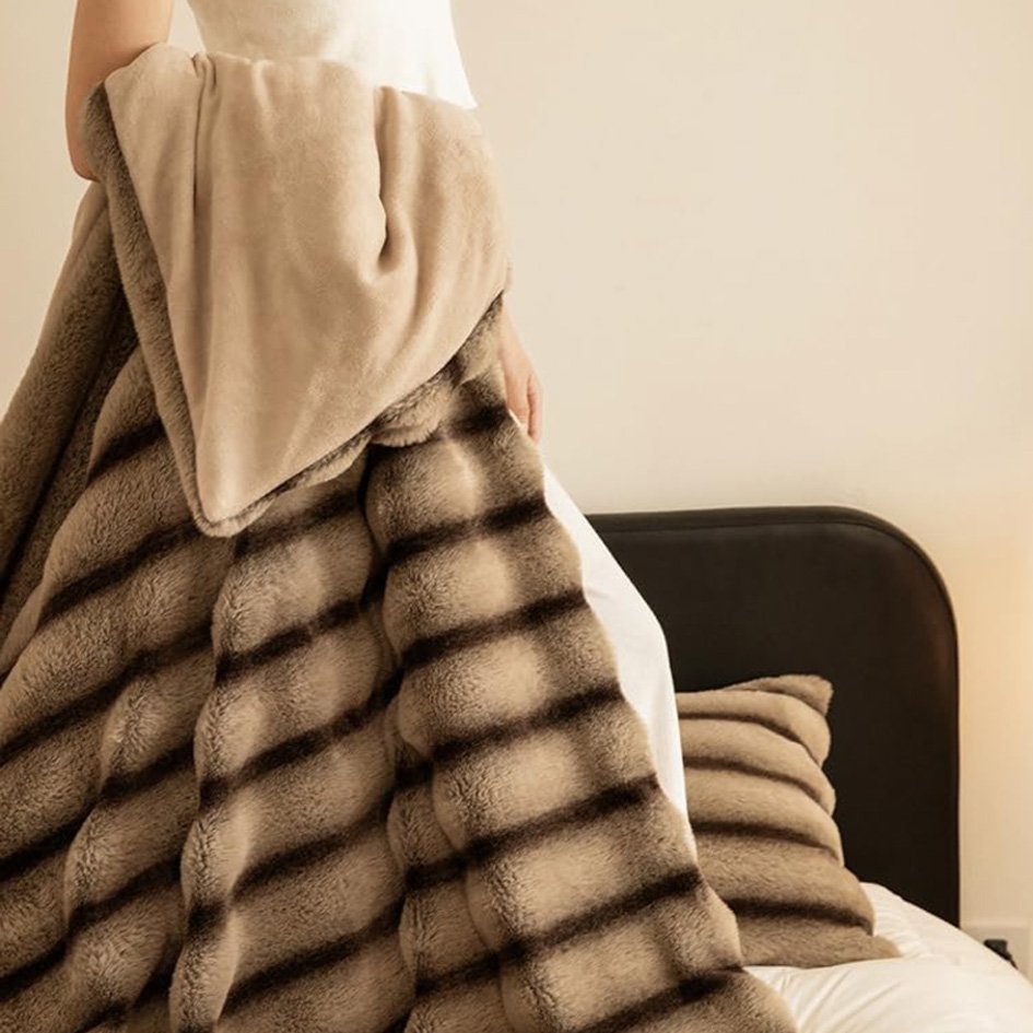 Švelnus kailinis pledas – antklodė. Kailinė tekstūra suteikia elegancijos bet kuriai namų erdvei, puikiai derės moderniame ar klasikiniame interjere.