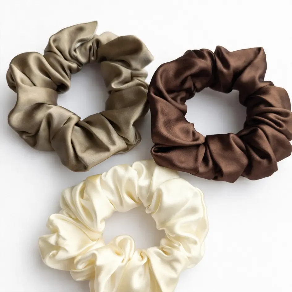 Šilkinės gumelės, 3 vnt. kreminė, chaki ir ruda – subtilūs atspalviai idealiai tinka tiek kasdienai, tiek šventėms, kai norisi natūralios ir elegantiškos išvaizdos.