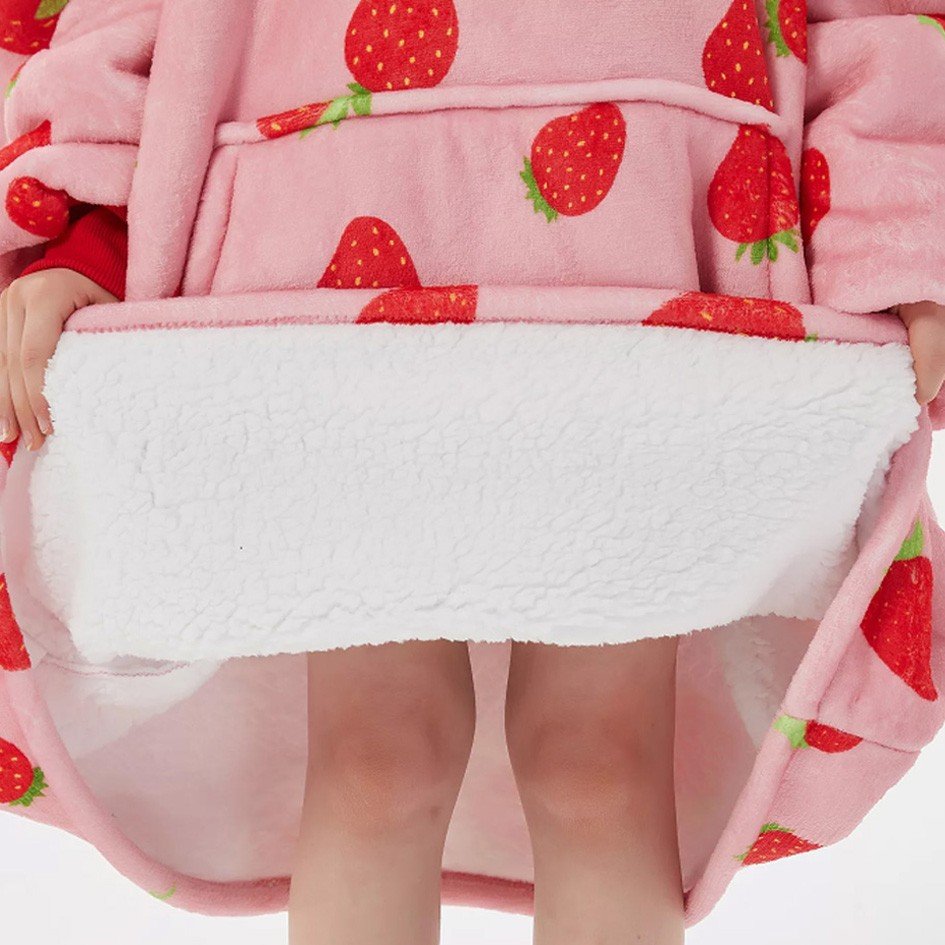 Džemperis pledas mergaitei, rožinis su braškėmis.